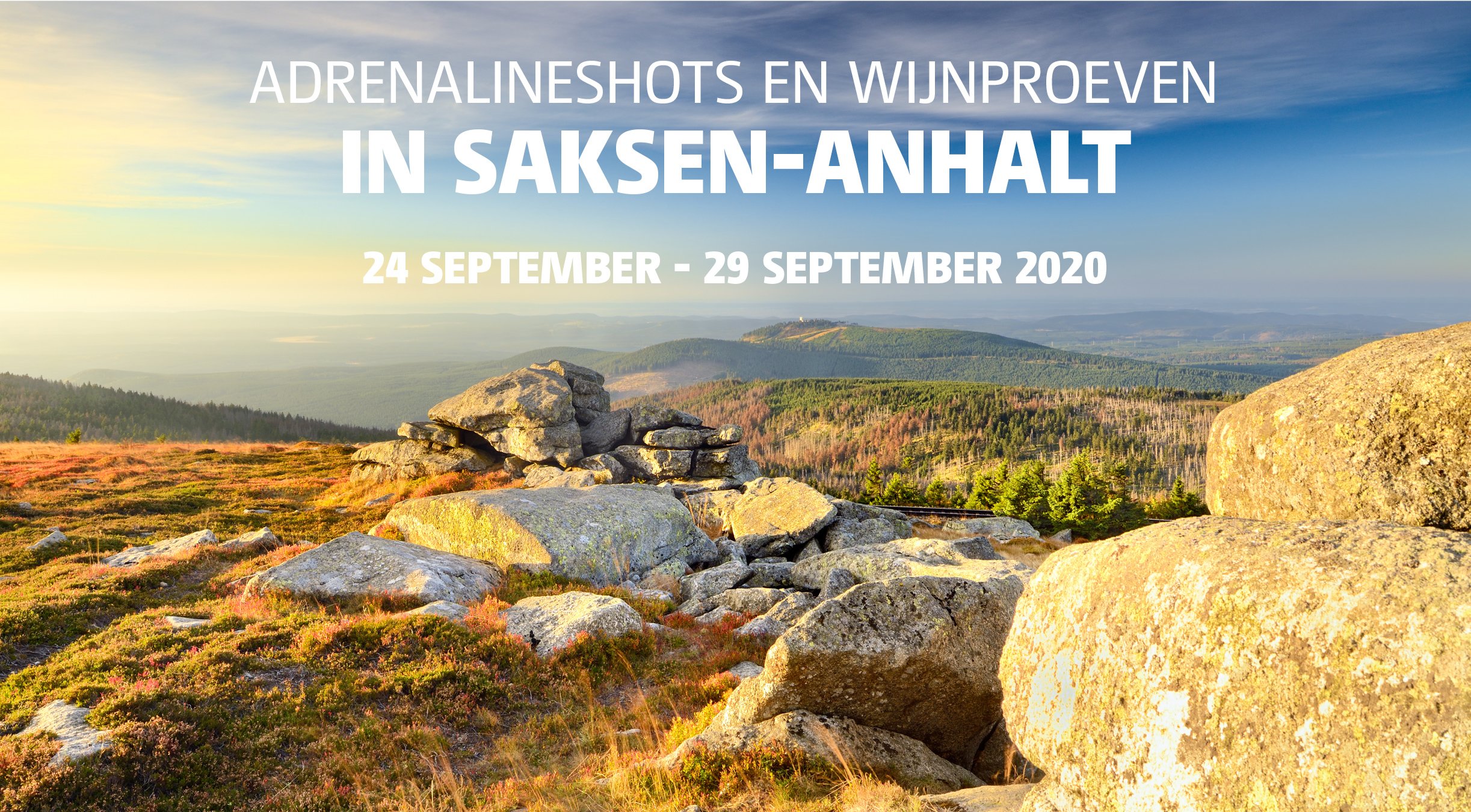 In samenwerking met het Duits Verkeersbureau organiseren we in september en oktober 2020 vijf toffe trips vol activiteiten, cultuur en ontspanning. En dat allemaal omgeven door prachtige natuur. Schrijf je in en wie weet reis je straks mee naar Saarland, Nedersaksen, Weserbergland, Saksen-Anhalt of Mecklenburg-Voor-Pommeren.