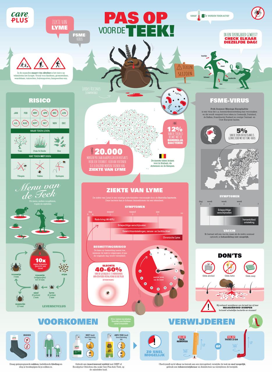 Teken, de meeste mensen gaan al gruwelen bij de gedachte. En terecht, een klein beestje dat zich vastzet op je huid en zich tegoed doet aan jouw bloed: materiaal voor in een horrorfilm! Daarbij komt ook nog dat sommige teken een bacterie verspreiden die de ziekte van Lyme veroorzaakt. Maar geen paniek, samen met Care Plus vertellen we je hoe je een tekenbeet voorkomt en wat je moet doen als je wordt gebeten.