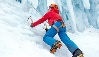 Helm? Check. Harnas? Check. IJsbijlen en stijgijzers? Check. IJsklimmen staat hoog op mijn bucketlist. Ik sta onderaan een enorme bevroren waterval en kijk naar boven: grillige ijssculpturen, die zo uit een druipsteengrot lijken te komen. Er zijn vier routes uitgezet, van makkelijk tot zeer moeilijk. Na de nodige uitleg van berggids Clemens en wat oefenen op de makkelijkste routes, begin ik aan de op een na moeilijkste route van ongeveer veertig meter hoog.