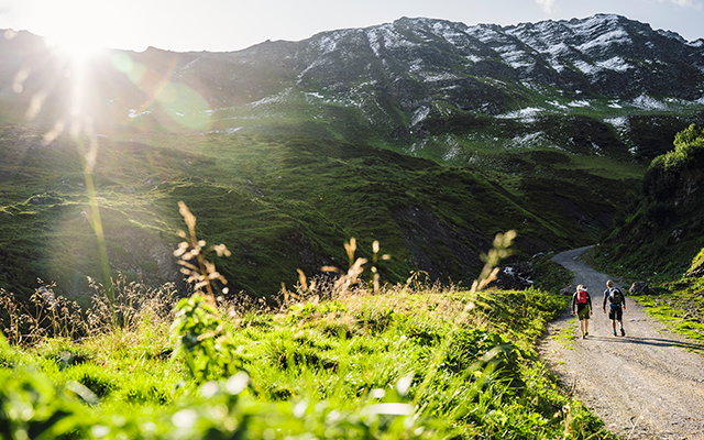 Per e-bike zet je vanuit Schruns, de officieuze hoofdstad van Montafon, koers richting de schilderachtige Gampadelstal, terwijl je onderweg groene weilanden, turkooizen bergmeren en bruisende bergstromen passeert. Is er iemand die deze bijzondere bike & hiketocht niet als muziek in de sportieve oren klinkt? Het laatste stukje leg je te voet af: een wandeling van een luttele 45 minuten. Op ruim 2.200 meter hoogte ligt de eindbestemming van de tocht – de Tilisunahütte – alwaar een prachtig uitzicht op de toppen van het Rätikongebergte op je wacht. En een onvervalst stukje Montafoner Sura Kees: de regionale kaasspecialiteit.
