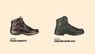De Meindl Tessin Identity (voor dames en heren) is zo’n A/B-schoen. Hij is gemaakt van traceerbaar leer, wat wil zeggen dat het aantoonbaar milieuvriendelijk en chroomvrij (de voering) in Duitsland wordt gelooid. Ondanks het leer zijn de schoenen relatief licht, vooral dankzij de lichtgewicht, flexibele tussenzool. De onderzool geeft veel grip en het Gore-Tex-membraan houdt je voeten altijd droog. De Vakuum Ultra GTX (voor dames en heren) is ook een A/B-schoen van Meindl, maar heeft door het nubuckleer een heel andere look. Bovendien is ‘ie gevoerd met het Memory Foam System, waardoor de schoen zich helemaal aanpast aan jouw voet.