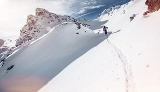 The next level van freeriden ontdek ik een paar dagen later in het verderop gelegen Crans-Montana. Hier laat ik de skiliften links liggen en loop op toerski’s met stijgvellen eronder naar boven. Op zoek naar maagdelijke afdalingen. Speciaal hiervoor is vorig jaar het Rando Parc geopend, een initiatief van toerski-kampioen Séverine Pont-Combe.