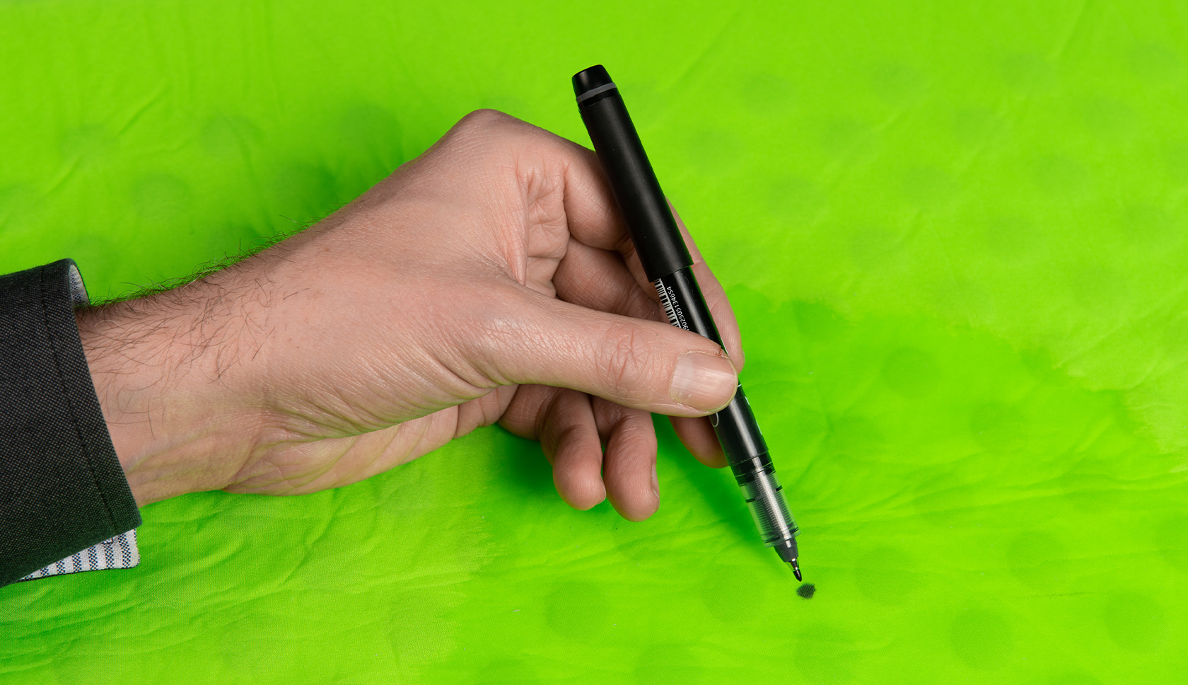 In de natuur heb je niet altijd zeepsop en een spons bij je. Kijk en luister goed naar waar de lucht ontsnapt. Trek voorzichtig aan de slaapmat op de plek waar je het lek vermoedt. Markeer het lek met een stift om het niet te verliezen.