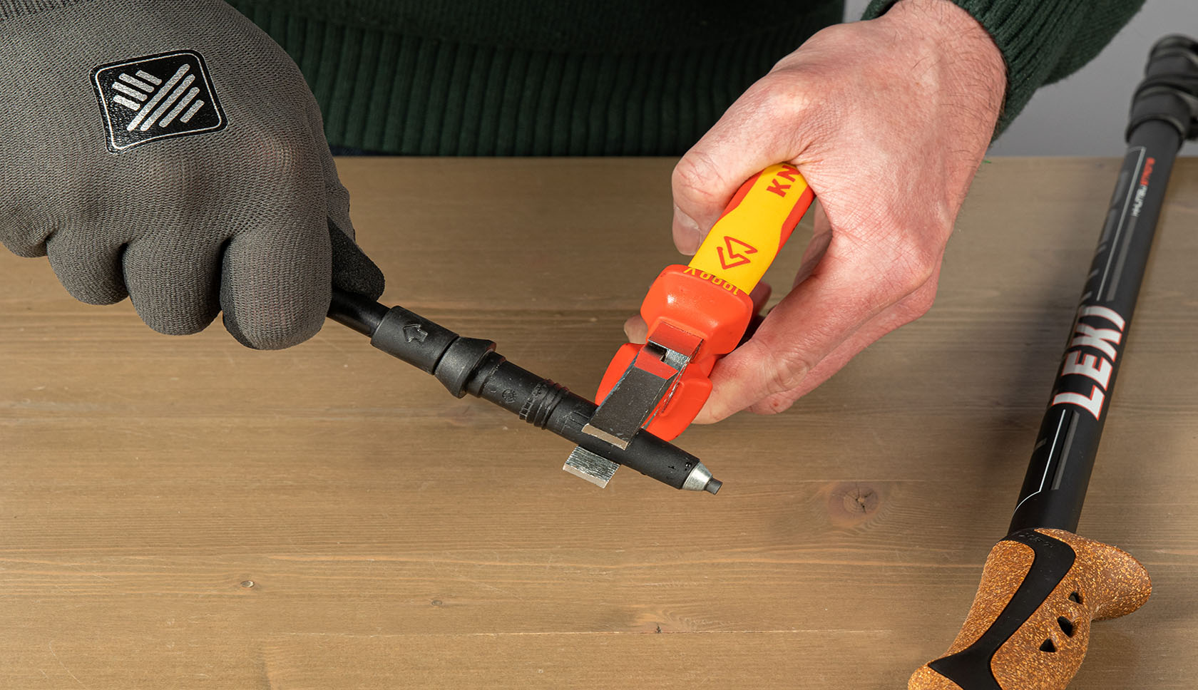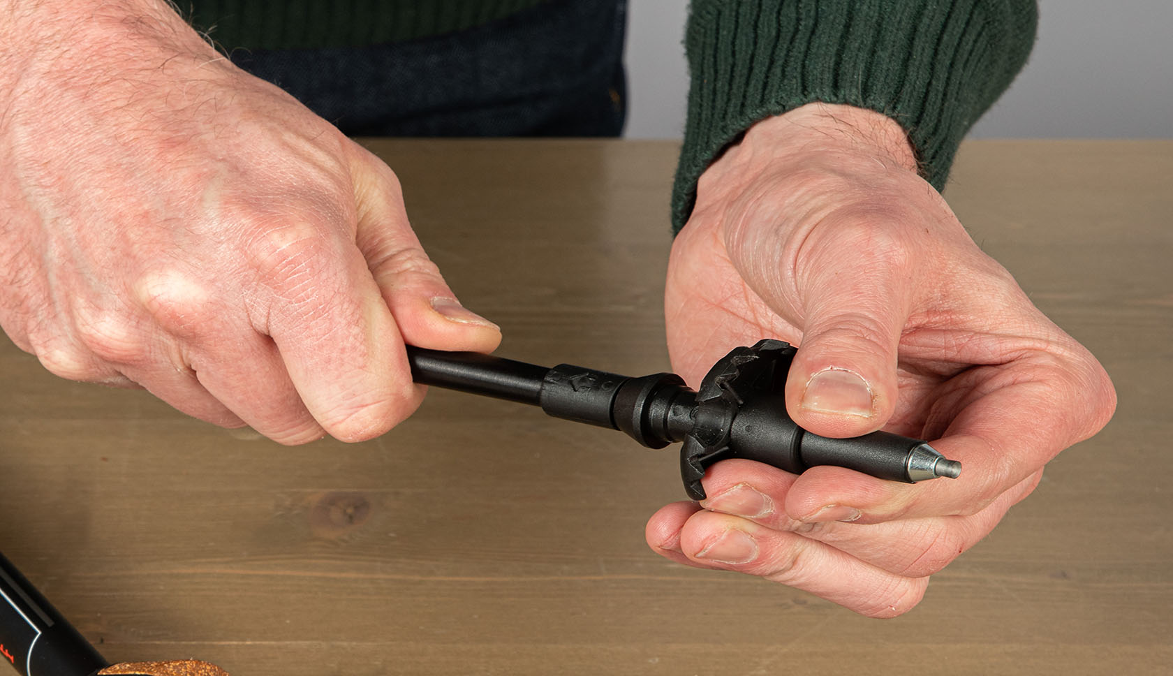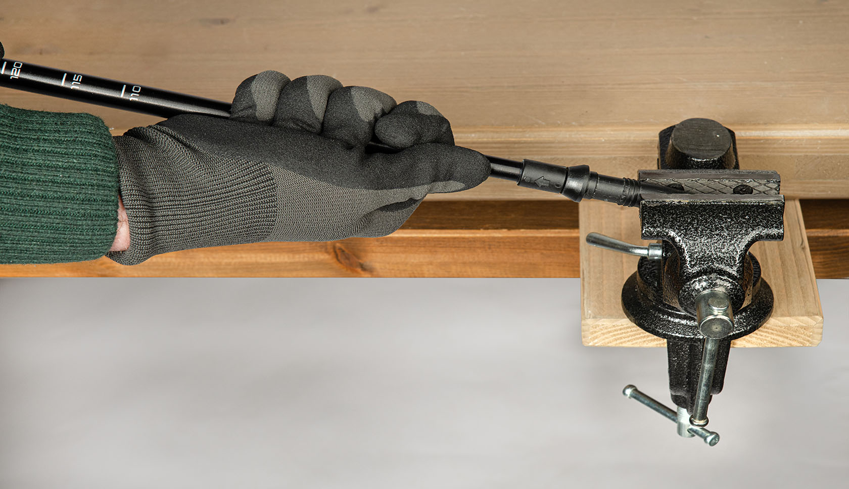Heb je geen bankschroef tot je beschikking? Probeer het dan door de punt met een tang vast te pakken.